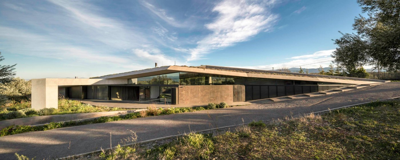 This angular rural house in Greece by Athens studio Tense Architecture Network has over half of its concrete body buried beneath the ground (+ slideshow + photographs by Filippo Poli).